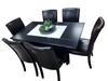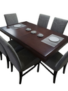 6 SILLAS TAPIZADO EN TELA , MESA RECTANGULAR ENCHAPADA OKUME