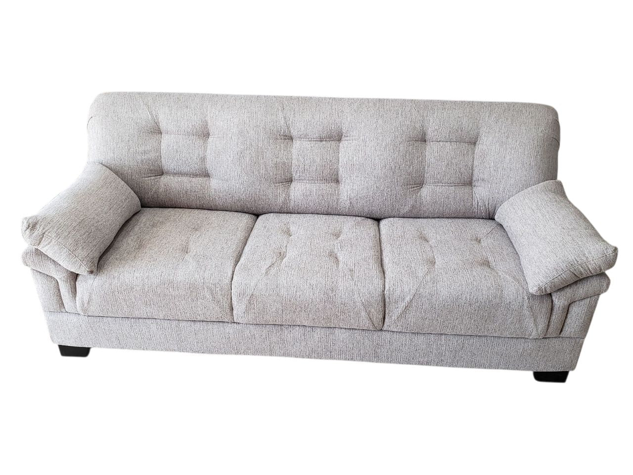 El tapizado en un elegante color "Zumaya Taupe" (un beige-grisáceo cálido) le da a este juego de sala una apariencia sofisticada y versátil que se adapta a cualquier decoración. Sus líneas limpias, brazos ligeramente curvados y cojines de respaldo sueltos ofrecen una comodidad inigualable y un estilo contemporáneo. Es la pieza perfecta para crear un rincón de relajación y bienestar en tu hogar.